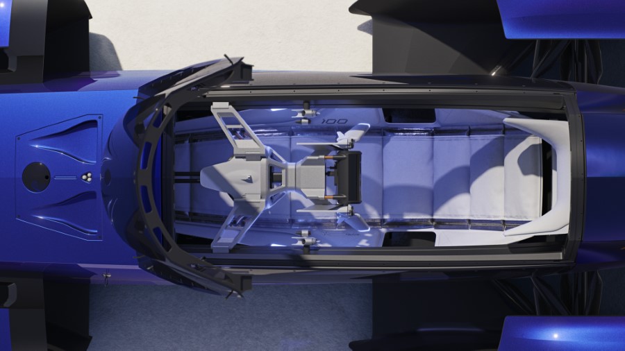 Sedež se popolnoma prilega telesu voznika in mu daje občutek zraščenosti z vozilom. Sedež je oprt na tanke lamele iz kompozita z ogljikovimi vlakni, ki so oblečene v tehnično blago, kar se prav tako navdihuje v zrakoplovni in vesoljski industriji, kjer je vsak gram pomemben za izboljšanje zmogljivosti.
