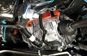 IMG_5502-1536×1000 Posnetek pod zadnjim delom Tesle model Y s pogonom na zadnja kolesa, ki prikazuje oznako električnega motorja 3D7.