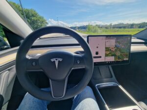 Teslin pristop »manj je več« je prikazan v tem, da v vozilu pred voznikom ni klasičnih merilnikov, ampak se mora voznik zanesti na osrednji zaslon na dotik za večino upravljavskih funkcij.